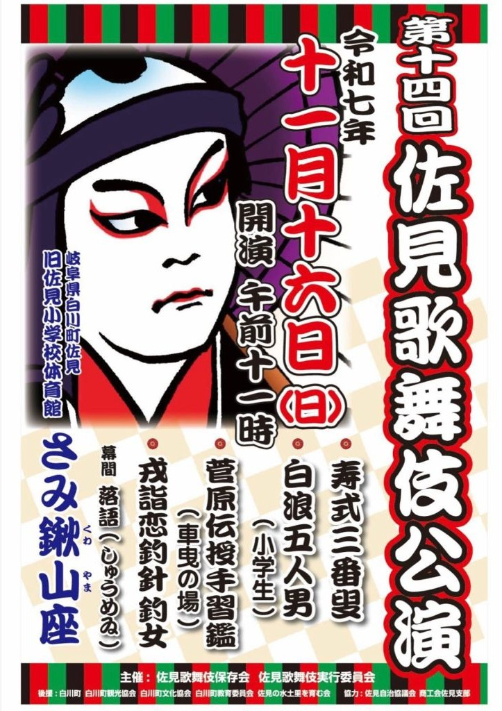 11/16(日)、旧佐見小学校体育館において、第14回佐見歌舞伎公演が開催されます。歌舞伎公演開催時、会場となる旧...