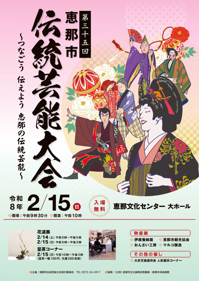 2月15日(日)、恵那文化センター 大ホール(恵那市)にて、第35回恵那市伝統芸能大会が開催されます。市内の地歌舞...