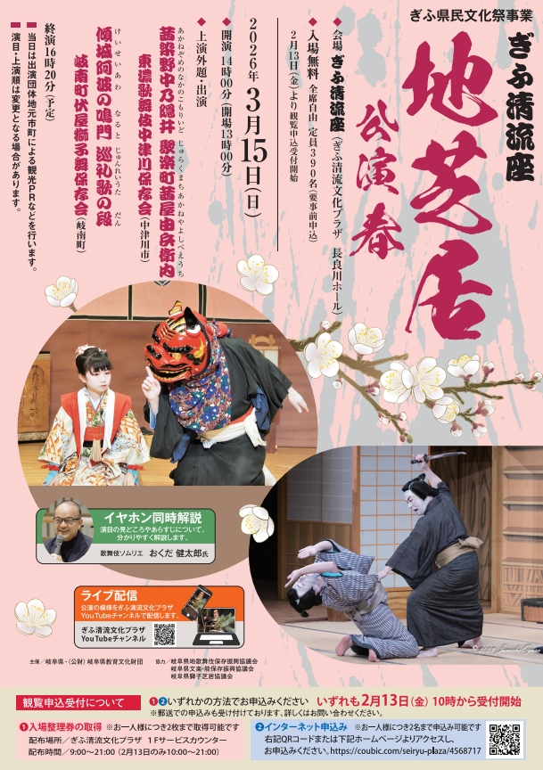 3月15日(日)、ぎふ清流座(ぎふ清流文化プラザ 長良川ホール)にて、「ぎふ清流座 地芝居公演 春」を開催しま...