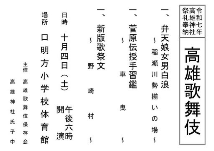 《地歌舞伎》【10/4開催】高雄神社祭礼奉納 高雄歌舞伎