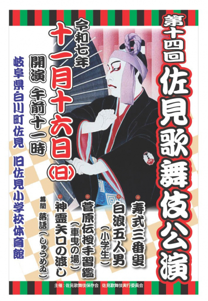 11/16(日)、旧佐見小学校体育館において、第14回佐見歌舞伎公演が開催されます。